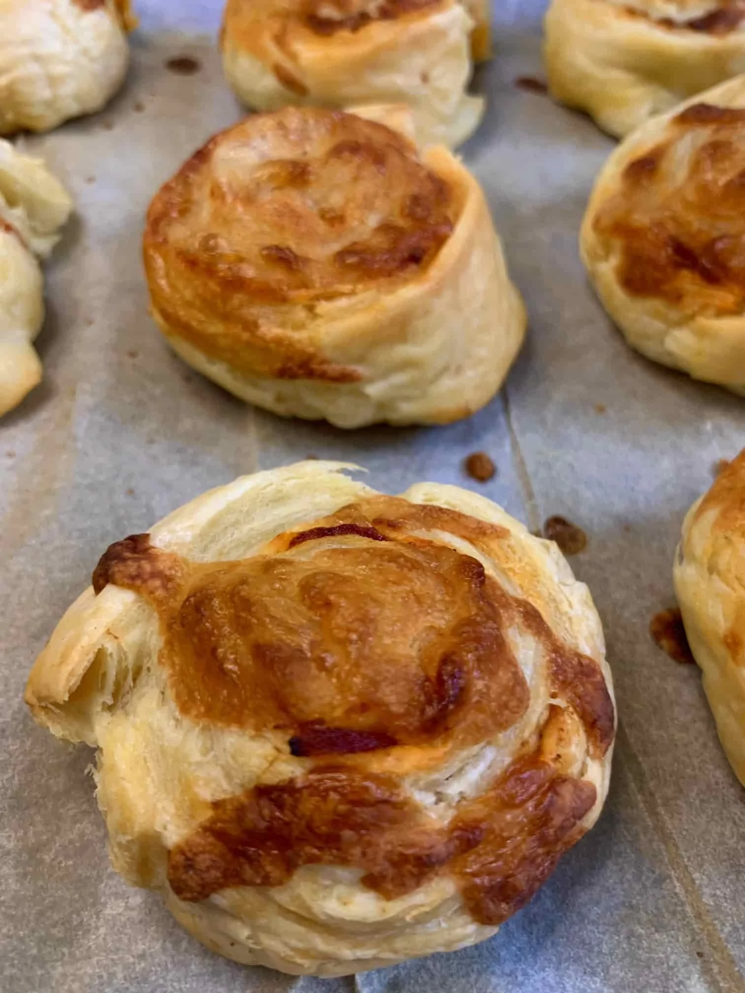 - Lay the pinwheels out and sprinkle with cheese.